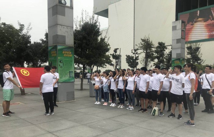 參觀結束后,團總支在科技館入口處舉行了重溫入團誓詞活動,參加活動的團員在領誓員的帶領下,面對團旗、舉起右手、莊嚴宣誓。