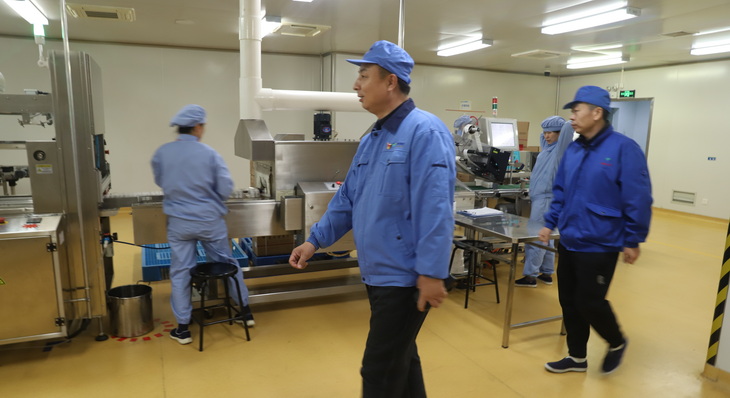 在生產車間,劉統斌走近藥品包裝生產線,仔細察看藥品的裝盒、賦碼、打包等每一環節,要求現場操作人員嚴格遵守操作規程,加強崗位技能提升,努力成為“一專多能”的崗位多面手。