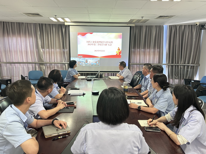 為保證《中共中央關于開展第二批學習貫徹習近平新時代中國特色社會主義思想主題教育的指導意見》和國藥集團黨委、國藥現代黨委關于學習貫徹習近平新時代中國特色社會主義思想主題教育第一批總結和第二批部署會議等精神在國藥工業第一責任落實、第一議題學習、第一標準領會、第一要求貫徹,9月22日,國藥工業黨委組織召開了2023年黨委理論學習中心組第三次學習擴大會議暨學習貫徹習近平新時代中國特色社會主義思想主題教育部署會議,對深入開展學習貫徹習近平新時代中國特色社會主義思想主題教育工作進行了全面部署,國藥工業黨政班子成員、中層管理人員、黨員代表和團總支委員以及黨群與紀檢辦公室工作人員共計51人參加了會議。