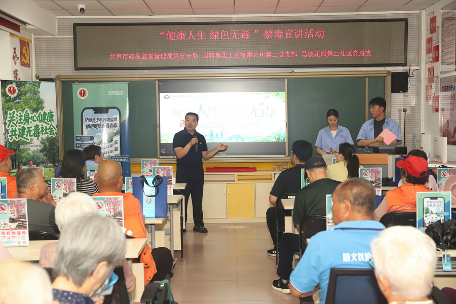 為深化黨建引領(lǐng)作用,踐行社會責(zé)任,6月27日,國藥工業(yè)第二黨支部創(chuàng)新主題黨日活動形式,聯(lián)合北京市藥品監(jiān)督管理局第五分局,深入馬坡花園第二社區(qū),共同開展了一場主題鮮明、內(nèi)容豐富的“健康人生,綠色無毒”禁毒宣傳主題黨日活動,將禁毒知識精準(zhǔn)送達(dá)居民身邊,筑牢社區(qū)安全防線。北京市藥監(jiān)局第五分局副局長高興旺、馬坡花園第二社區(qū)書記岳佳、國藥工業(yè)第二黨支部書記王向揚和黨員、積極分子等參加了活動。