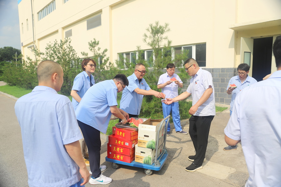 ????絲絲清涼沁人心,句句關懷鼓干勁。此次“送清涼”活動是國藥工業工會貫徹落實“以人為本”理念、服務員工、維護員工健康權益的具體行動,不僅為高溫作業的一線員工送去了清涼和健康保障,更極大地激發了員工的工作熱情和歸屬感,營造了關愛員工、尊重勞動、和諧發展的良好氛圍,為公司安全生產和高質量發展凝聚了強大合力。