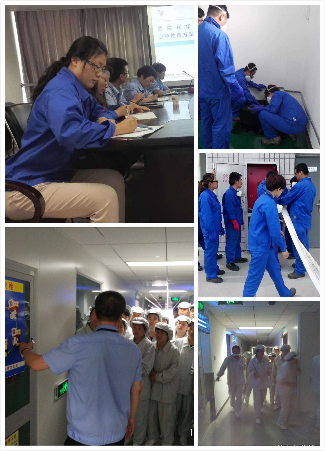活動期間,安全部為各崗位發放了安全知識宣傳手冊,在綜合辦公樓、生產車間懸掛張貼了安全掛圖和警示條幅,組織全員觀看了《覆車之鑒》系列安全生產教育影像資料,制劑車間開展了逃生和消防應急演練,生產運營部開展了危險化學品泄露現場處置方案桌面推演和現場演練等。
