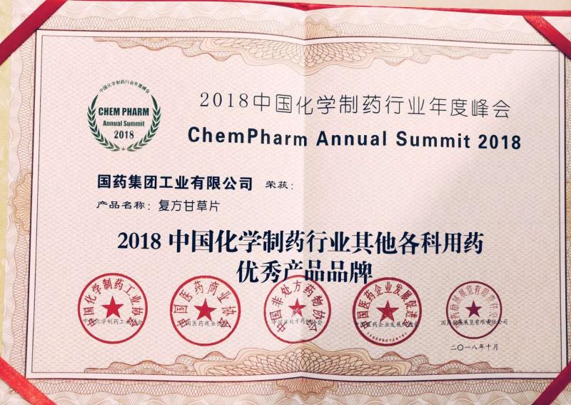 在本次峰會上我公司“復方甘草片”榮獲2018中國化學制藥行業(yè)其他各科用藥優(yōu)秀產(chǎn)品品牌獎,“藥用色譜分離純化工藝項目”獲得2018年中國化學制藥行業(yè)綠色制藥特設(shè)獎。本次峰會有效擴大了公司品牌的知名度及影響力。(人力資源行政部供稿)