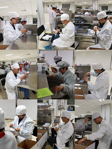 鹽酸右美托咪定注射液為公司新獲批產品,由廊坊分公司生產。因上市后生產批量大,包裝人手不足,供貨緊張。11月20日,公司第四黨支部立即組織全體黨員開展了“保供應、助生產、聚人心、強企業”的主題黨日活動,支援車間鹽酸右美托咪定注射液包裝。第四黨支部倡議廊坊分公司全體人員積極到生產一線開展為期一周的支援生產活動。在第四黨支部的帶領下,廣大員工積極響應黨組織的號召,所有參加活動的人員在合理安排本職工作的前提下,深入一線支援生產,組成臨時生產力量,與車間員工一起忙碌在生產包裝第一線,以實際行動助力生產任務達成。