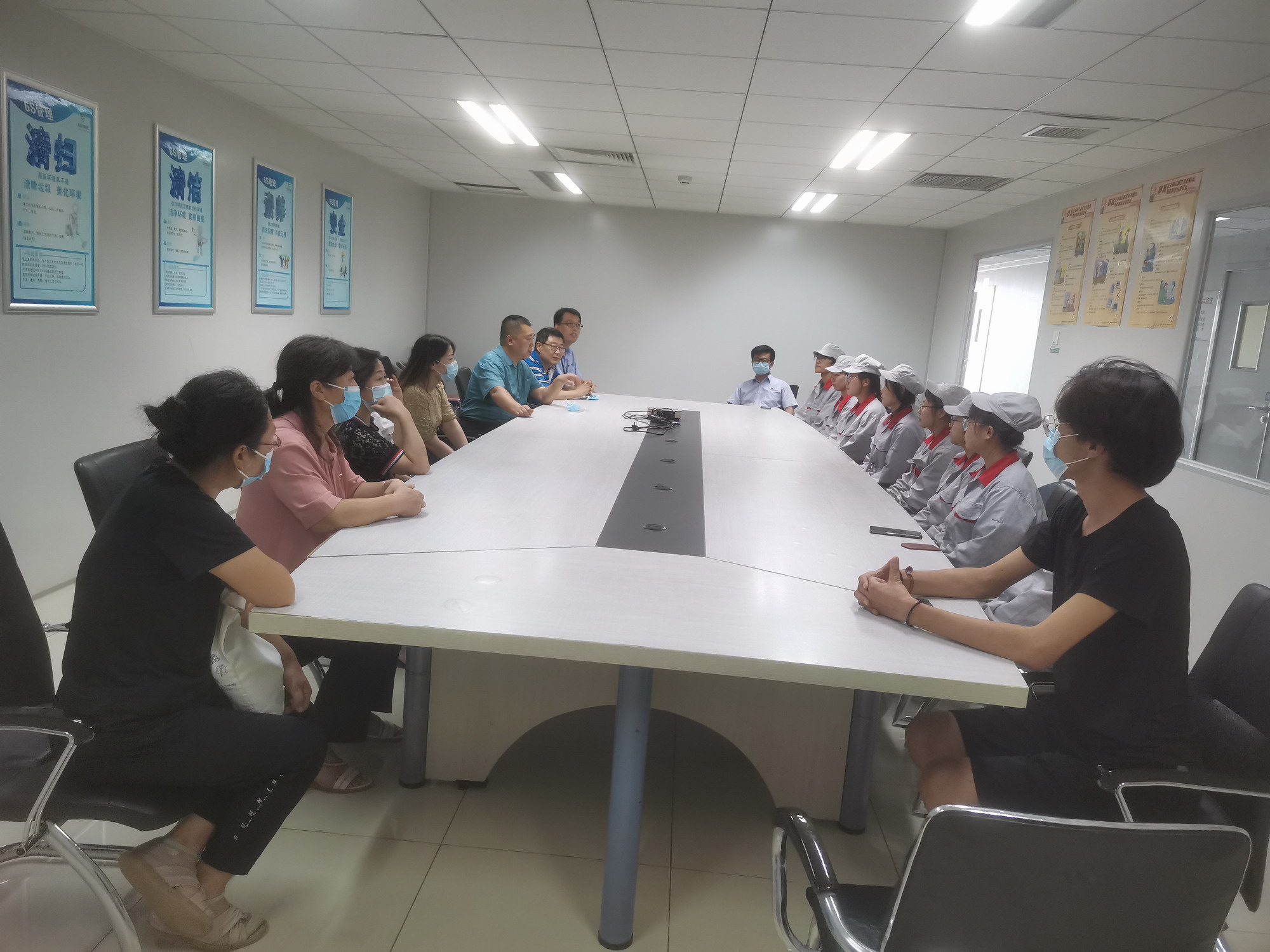 趙立華書記一行參觀了生產車間、公司食堂、職工宿舍,隨后與廊坊衛生職業學院在公司實習的學生見面座談,詳細了解實習生的工作學習情況、食宿情況,并教導學生要珍惜難得的學習實踐機會,多向老員工學習,不斷積累提升自身能力,將所學知識在工作中靈活實踐和運用。