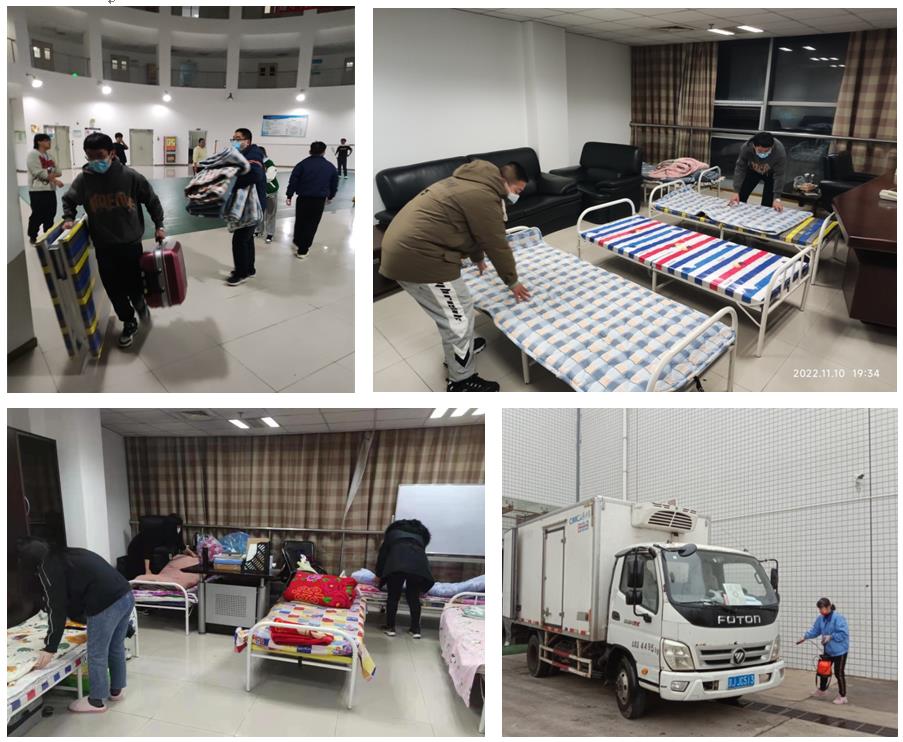疫情就是命令,防控就是責任,在國藥工業黨委的統一部署下,總經理助理趙岳鋒迅速組織已下班的黨員干部職工,落實屬地政府的通知要求,將保供人員協調駐廠封閉管理。此時正是下班時間,部分保供員工還在回家的路上,接到通知后,都來不及在家吃口安穩飯、簡單安排一下家里,就背起行囊再出發。凍干車間班組長程帥甚至沒時間顧上家中兩歲患病的孩子,就義無反顧的返回到工作崗位。大家分工協作,緊張有序,將一張張小床鋪到了公司接待室、報告廳、辦公室、值班室等各個角落。北方初冬的傍晚,夜幕早已灑下來,但每一位努力逆向而行的員工都像一道道最美的光,照亮著國藥工業拼搏進取的道路。就在當天晚上,131名駐廠人員順利集結完畢,堅守在企業里,堅守在崗位上。