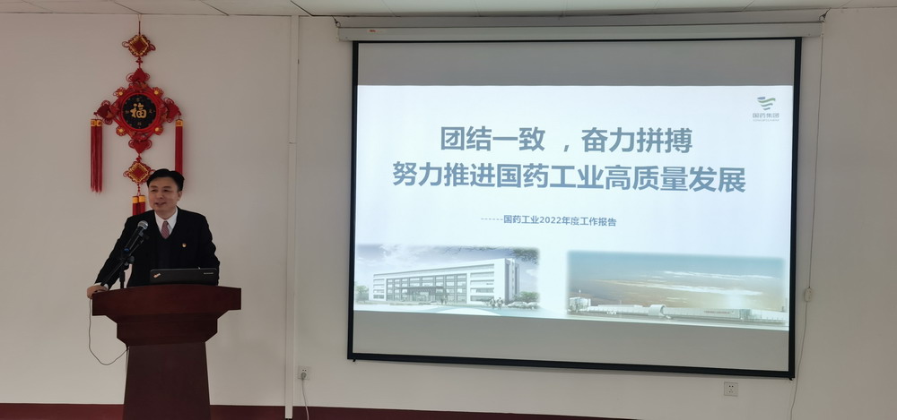 會上,公司黨委書記、總經理劉統斌作了《團結一致,奮力拼搏,努力推進國藥工業高質量發展》的工作報告。劉統斌同志指出,2022年是國藥工業發展中極不平凡,極具考驗的一年,在國藥集團和國藥現代黨委的堅強領導下,我們深入學習貫徹黨的二十大精神和習近平總書記系列重要講話重要指示精神,堅決落實黨中央“疫情要防住、經濟要穩住、發展要安全”明確要求,公司全體干部職工團結拼搏,高效統籌疫情防控和生產經營工作,堅持人民至上,生命至上,堅持創新發展,攻堅克難,堅持統籌兼顧,綜合施策,較好完成了預算指標。劉統斌同志要求2023年要全面貫徹落實黨的二十大精神,要突出黨建引領,聚焦全面從嚴治黨;要突出研發創新,聚焦推進研發進度;要突出資源協同,聚焦涉疫藥品保供;要突出結構調整,聚焦麻精優勢品種;要突出精益管理,聚焦全面提質增效;要突出內部協同,聚焦服務客戶市場;要突出團隊建設,聚焦凝聚發展合力。深入推進“七個突出,七個聚焦”,認真分析問題,補齊短板,砥礪前行,乘勢而上,借力發力,以昂揚的姿態和優異的成績推進國藥工業高質量發展,以實際行動踐行黨的二十大精神。