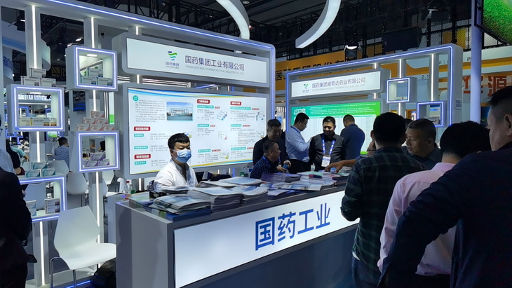 藥交會期間,國藥工業展示了在鎮痛、麻醉、鎮咳、婦科栓劑、心血管等領域的眾多產品,其中有上市多年,備受廣大患者認可和信賴的鎮痛類藥物洛芬待因片和氨酚氫可酮片,鎮咳類藥物復方甘草片;還有因國藥品質而備受矚目的麻醉類藥物枸櫞酸舒芬太尼注射液、咪達唑侖注射液等多款核心產品。會展期間,展館里人潮涌動,到國藥工業展區前來垂詢洽談的賓客絡繹不絕,展現出了公司高度的客戶認可度及行業影響力。