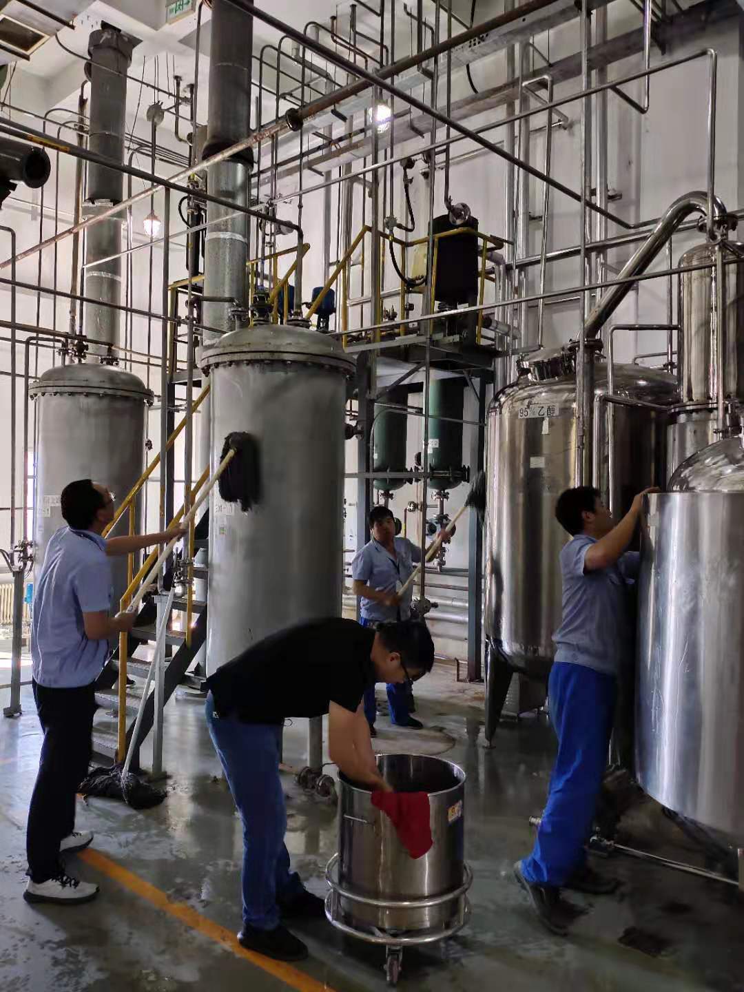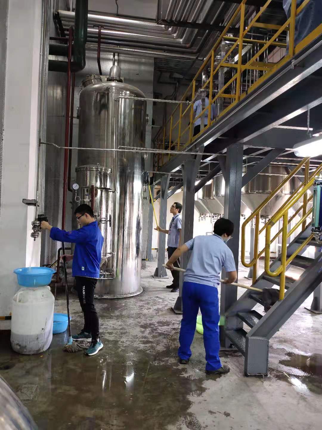 活動(dòng)開始前,行政部提前準(zhǔn)備了抹布、拖把、水桶、掃帚和簸箕等清潔工具。所有參加活動(dòng)的同志分成三組,對積雪草總苷生產(chǎn)線的提取區(qū)、制備區(qū)和乙醇回收區(qū)進(jìn)行了施工后的第一次拓荒。大家在活動(dòng)中發(fā)揚(yáng)了不怕苦、不怕累的精神,清除設(shè)備、擦拭管線上的浮灰,清掃地面、墻面。經(jīng)過兩個(gè)多小時(shí)的勞動(dòng),現(xiàn)場變得干凈,整潔,面貌煥然一新。